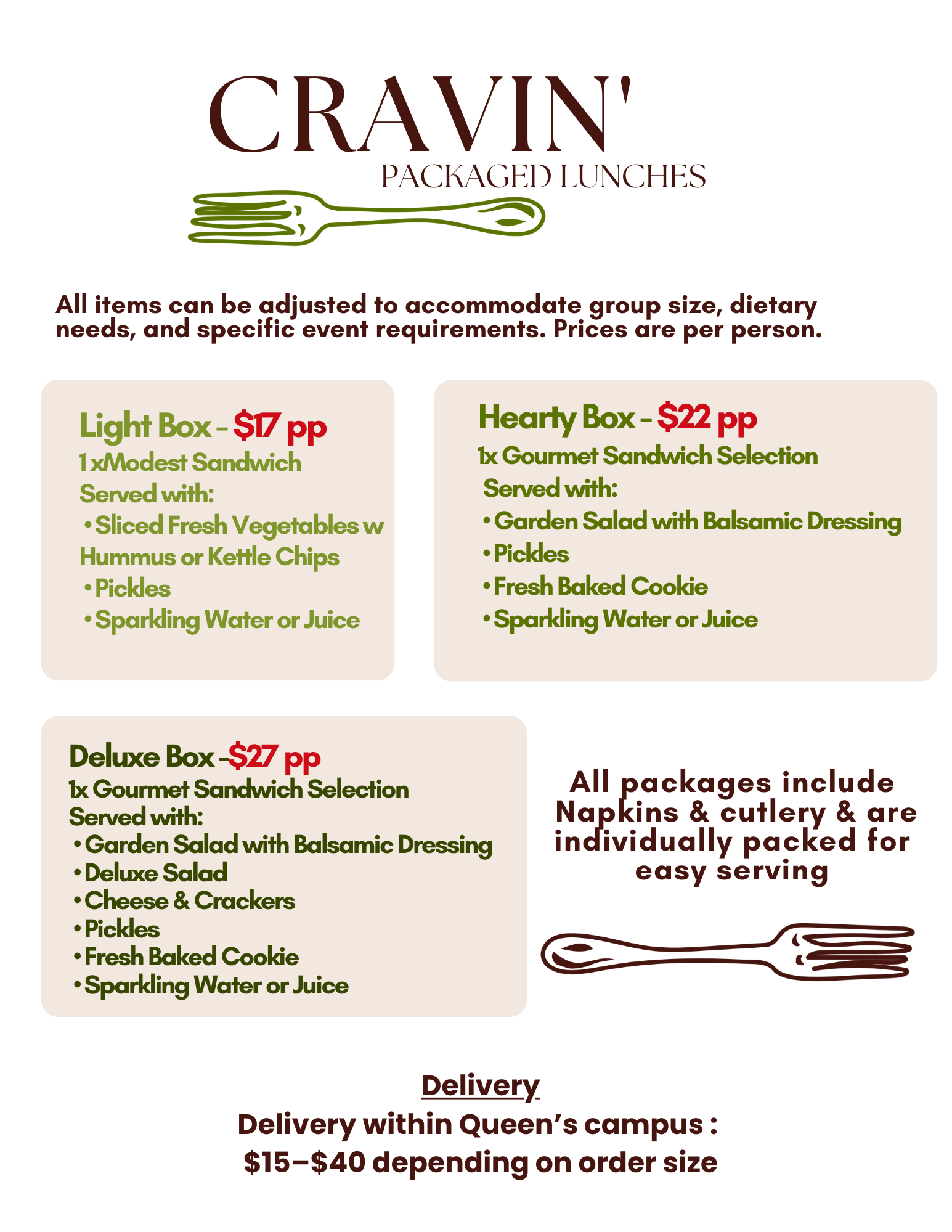 Packaged Lunches Fresh, thoughtfully prepared lunches — packaged for convenience, designed to impress. Order Now!